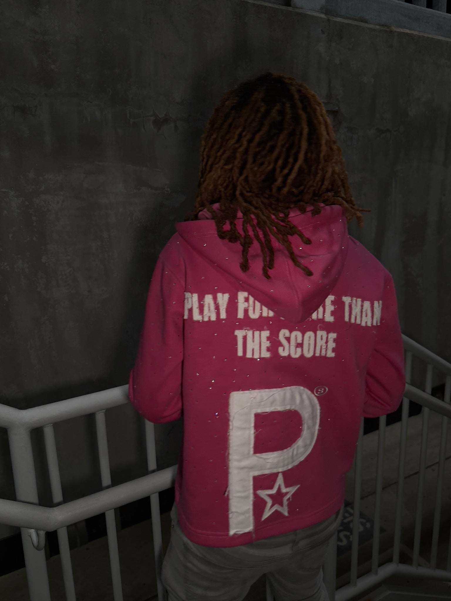 Pink Distressed Rhinestone Hoodie